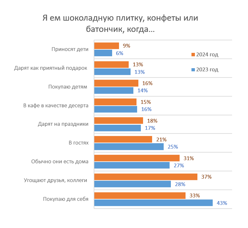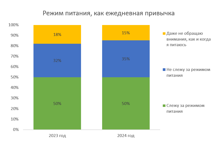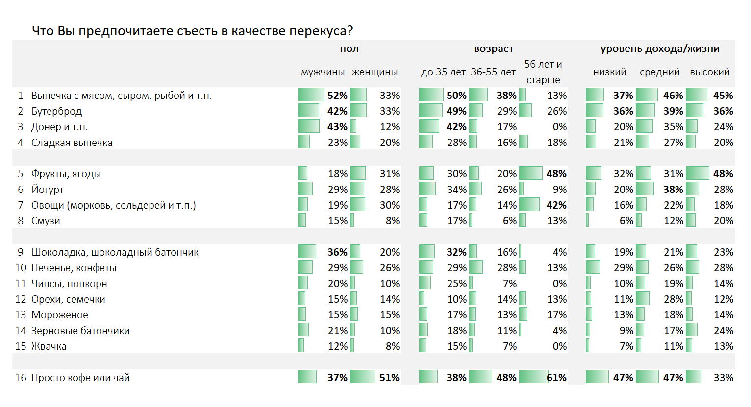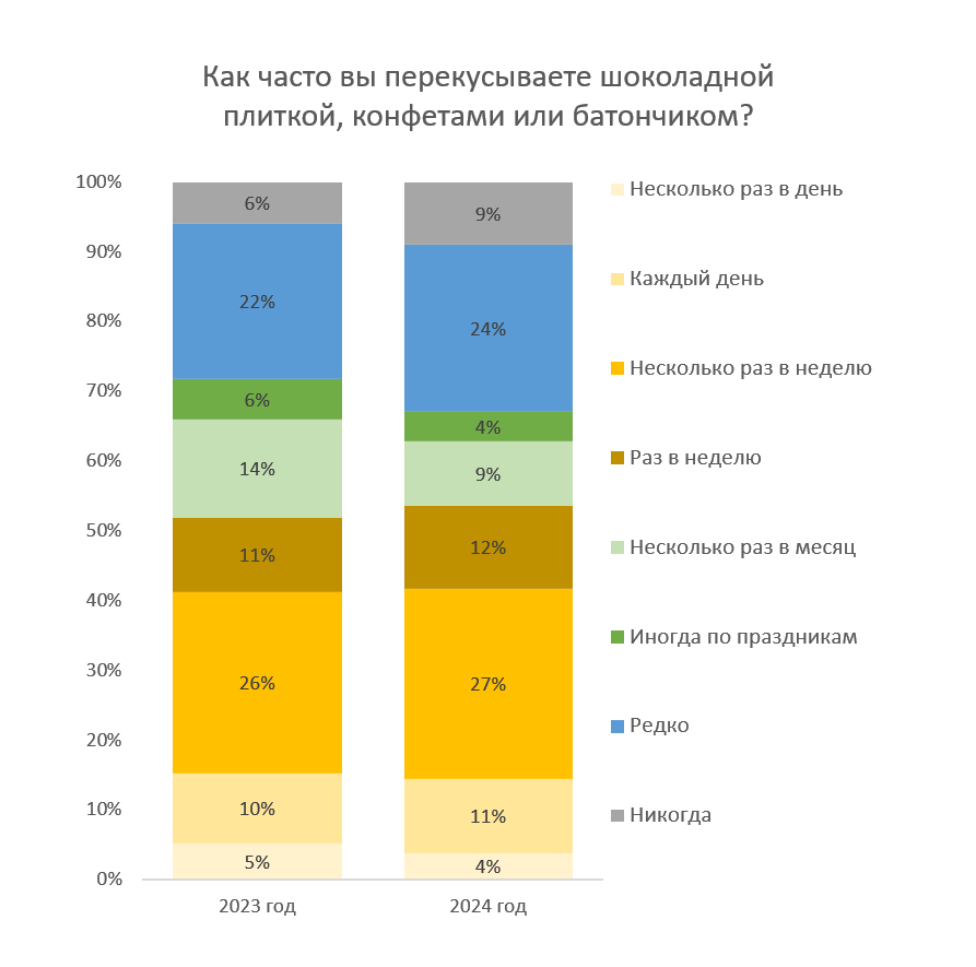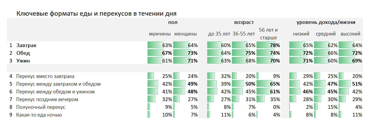 Мы считаем, что, отслеживая изменения в формате еды и перекусов, можно подмечать неочевидные на первый взгляд тенденции и некоторые аспекты В2С рынка; использовать «еду» как индикатор социального настроения и потребительского поведения общества; спрашивать людей не о больших и важных вопросах, а о привычном и ежедневном. Повторяя данный опрос несколько раз (это вторая волна, первый опрос прошел в 2023 году, в планах уже 2025 год), мы анализируем изменения, отслеживаем зависимости, тренды, тенденции. Получился увлекательный исследовательский эксперимент.
